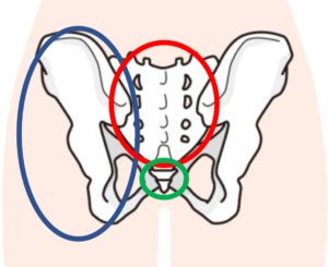 まず骨盤は大きく分けると左右にある寛骨と背骨とくっつく仙骨尾骨の3つが輪になってできています。
