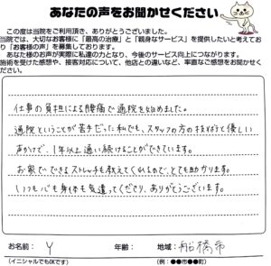メンテナンスで通おうと思います! 29/30歳 船橋市 Y.S \K.S様