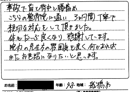 先生方のマッサージと施術で楽になってきました。