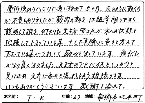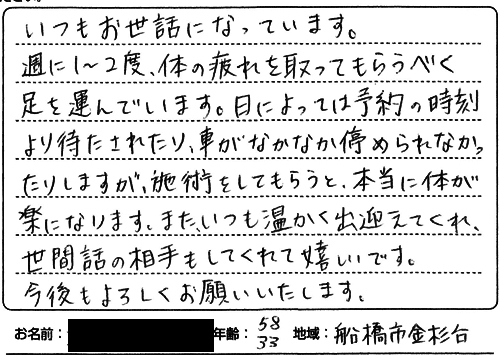 特に鍼を打った日久々に鼻歌が出るほど憂うつな鈍痛がなくなりました。